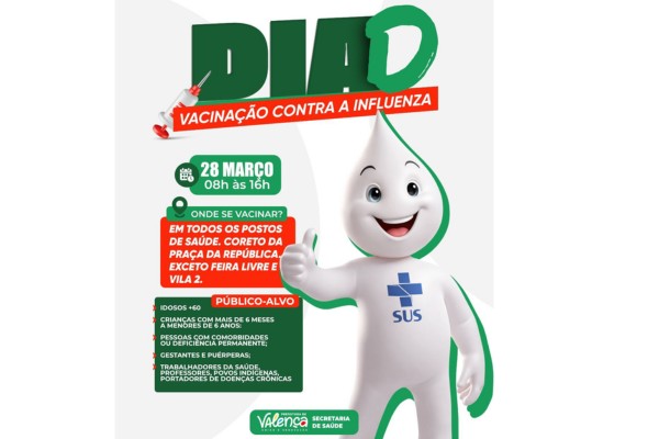 28 de março⏰ 08h às 16h 📍 Onde se vacinar?✔️ Em todos os Postos de Saúde, exceto Feira Livre e Vila 2✔️ No Coreto da Praça da República 👥 Público-alvo: